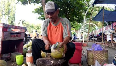 "Di bulan kemarin atau puasa, kami mampu menjual 200 hingga 300 butir kelapa muda perhari," ungkap Sawali (42), pedagang kelapa muda, Selasa (18/6/19). Sepekan ini, lanjut dia, para pedagang rata-rata hanya mampu menjual 70 butir kelapa muda perhari, itupun kalau pas kebetulan sedang ramai.
